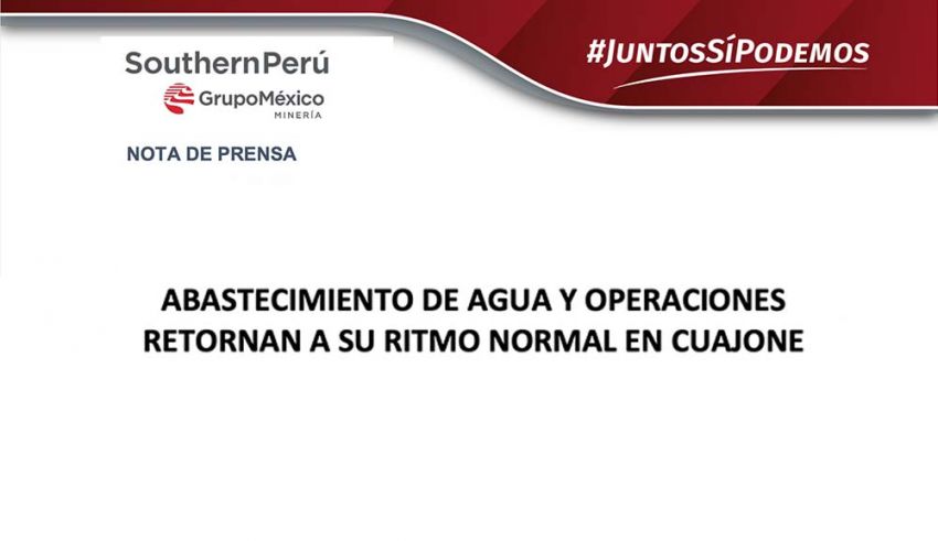 Como se recuerda, el corte de suministro de agua afectó a más de 5,000 pobladores (entre trabajadores y sus familiares) quienes habitan en el campamento, además de generar la paralización de las operaciones de la mina. Asimismo, perjudicó los servicios de atención del hospital de Cuajone y las labores presenciales en los tres colegios que funcionan en el campamento.