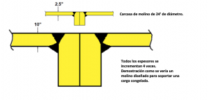 Las carcasas de los molinos se fabrican normalmente con acero de bajo carbono. El límite elástico del material de la carcasa del molino es típicamente al menos 6 veces el esfuerzo operativo del molino. De hecho, cuando una carga congelada rompe las bridas, sabemos que las cargas de impacto han excedido los límites de tracción del material. Por lo tanto, una carga congelada que dañe la carcasa o las bridas del equipo sugiere que las magnitudes de las cargas de impacto son más de 6 veces las magnitudes de las cargas operativas.